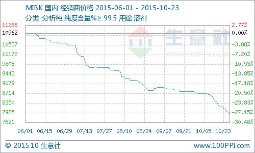 生意社化工分社MIBK分析師認為:上游丙酮持續(xù)下滑,MIBK成本支撐乏力,進口貨源供應充足,下游剛需為主,短期內利好難尋。預計MIBK市場后市維穩(wěn)為主或將小幅下滑。