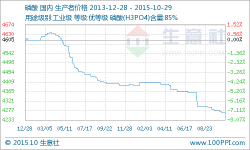 目前磷酸市場(chǎng)價(jià)格暫穩(wěn),湖北興發(fā)85%工業(yè)凈水酸出廠報(bào)價(jià)4400元/噸、廣西明利集團(tuán)85%工業(yè)凈水酸出廠報(bào)價(jià)4300元/噸、四川康龍化工85%工業(yè)級(jí)凈水磷酸出廠報(bào)價(jià)3900元/噸、什邡華蓉科技85%工業(yè)級(jí)凈水磷酸出廠報(bào)價(jià)4400元/噸、四川什邡泰來(lái)化工85%工業(yè)凈水酸出廠報(bào)價(jià)4050元/噸。預(yù)計(jì)磷酸報(bào)價(jià)暫穩(wěn)。