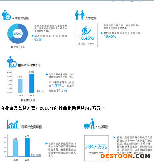 與年報一起發(fā)布的還有《復(fù)星醫(yī)藥2015年度企業(yè)社會責(zé)任報告》,公布了2015復(fù)興醫(yī)藥為CSR干了啥。