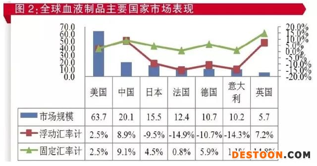英國市場規(guī)模為5.7億美元,同比增長7.2%,按固定匯率計(jì)增長14.8%,是主流醫(yī)藥市場血液制品用量增長率最高的國家。2014年10月至2015年9月,英鎊兌美元較上年同期貶值7.2%,貶值幅度小于歐元,所以英國市場以兩種匯率計(jì)算兌美元的增長率差異小于歐洲的歐元區(qū)國家。