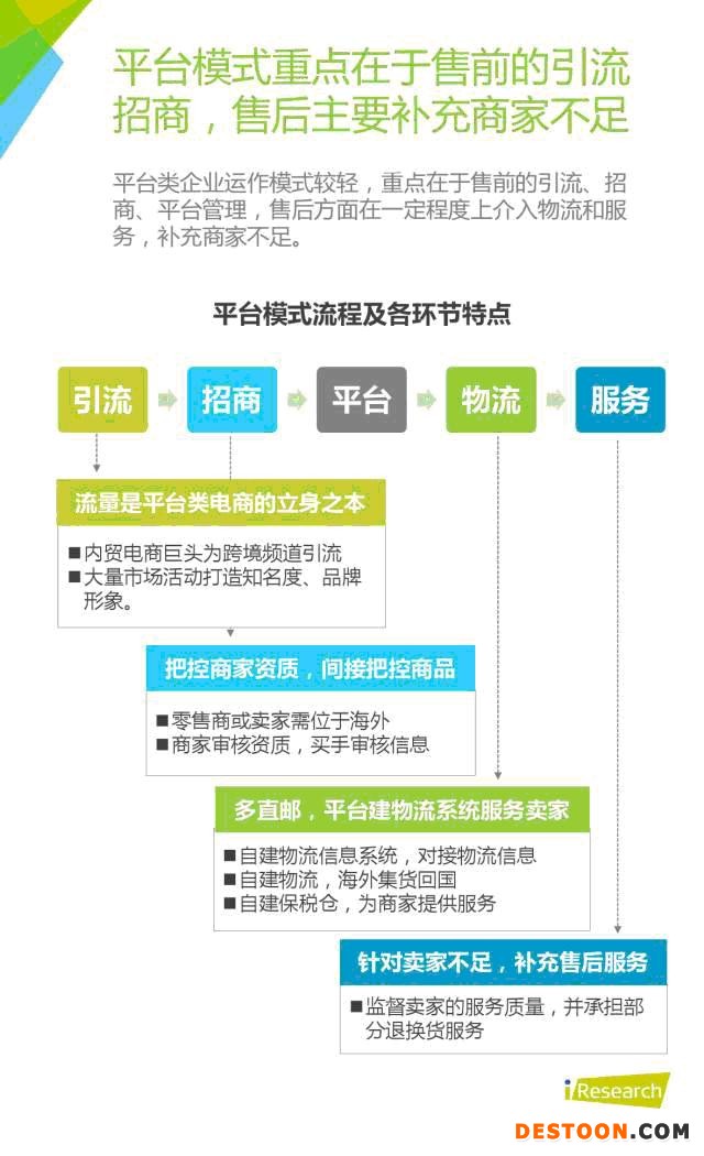 平臺模式是跨境電商的重要形式。在平臺模式下,從招商、運作、物流到最后的售后環(huán)環(huán)相扣。在跨境電商解決了客戶引流的問題后,最不想遇見的就是客戶的流失。而跨境電商的海外實地審核與驗證及平臺入駐商戶的審核能起到良好的產(chǎn)品品質(zhì)保障作用,配合產(chǎn)品的抽檢和復核將極大的減少不合格產(chǎn)品進口,降低總體風險。畢竟,誰掌握了優(yōu)質(zhì)的供應商和產(chǎn)品,誰就掌握了話語權(quán)。