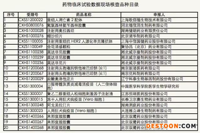 5月4日,國(guó)家食品藥品監(jiān)督管理總局食品藥品審核查驗(yàn)中心官網(wǎng)發(fā)布藥物臨床試驗(yàn)數(shù)據(jù)現(xiàn)場(chǎng)核查計(jì)劃公告(第2號(hào))。公告稱,根據(jù)《國(guó)家食品藥品監(jiān)督管理總局藥物臨床試驗(yàn)數(shù)據(jù)核查工作程序(暫行)》(食藥監(jiān)藥化管〔2016〕34號(hào))要求,計(jì)劃對(duì)重組人凋亡素2配體等20個(gè)藥物臨床試驗(yàn)數(shù)據(jù)自查核查品種(詳見(jiàn)附件)開(kāi)展現(xiàn)場(chǎng)核查,現(xiàn)予公示。公示期為10個(gè)工作日,即2016年5月4日至2016年5月17日。