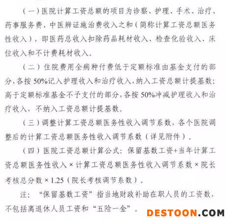 調(diào)整了醫(yī)院工資總額計算方法,即全院工資總額=保留基數(shù)工資+當年計算工資總額醫(yī)務(wù)性收入×計算工資總額醫(yī)務(wù)性收入調(diào)節(jié)系數(shù)×院長考核分×1.25(院長考核分調(diào)節(jié)系數(shù))。