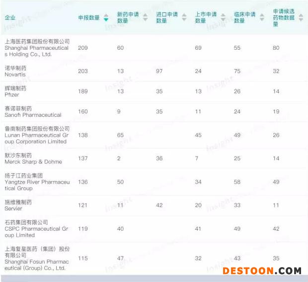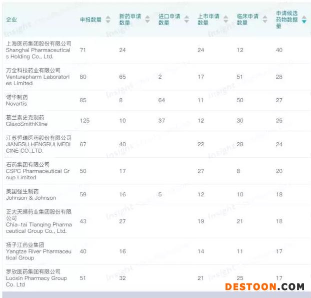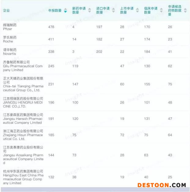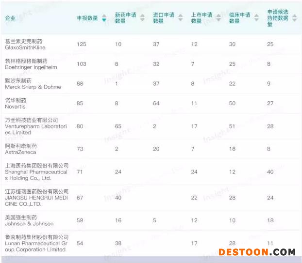 即使從申報(bào)藥物品種數(shù)量角度來看,諾華、GSK 和強(qiáng)生也不甘落后,依然挺進(jìn)前十。