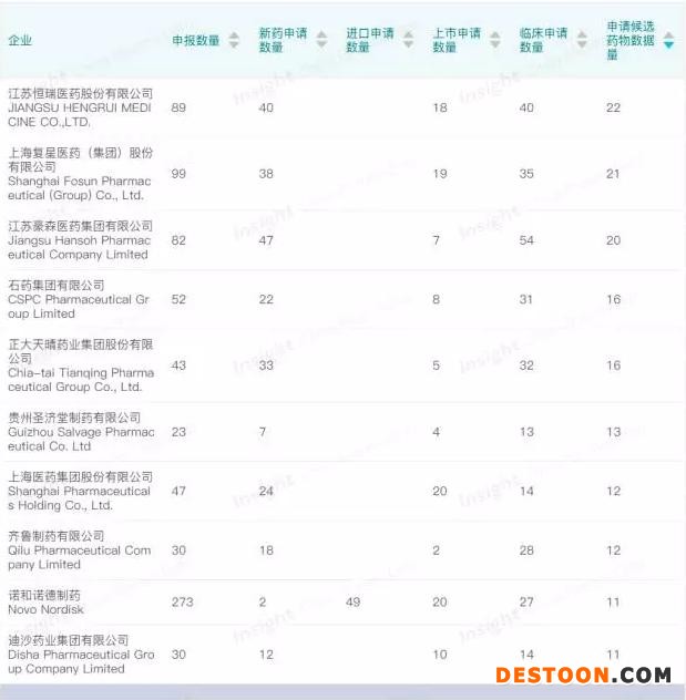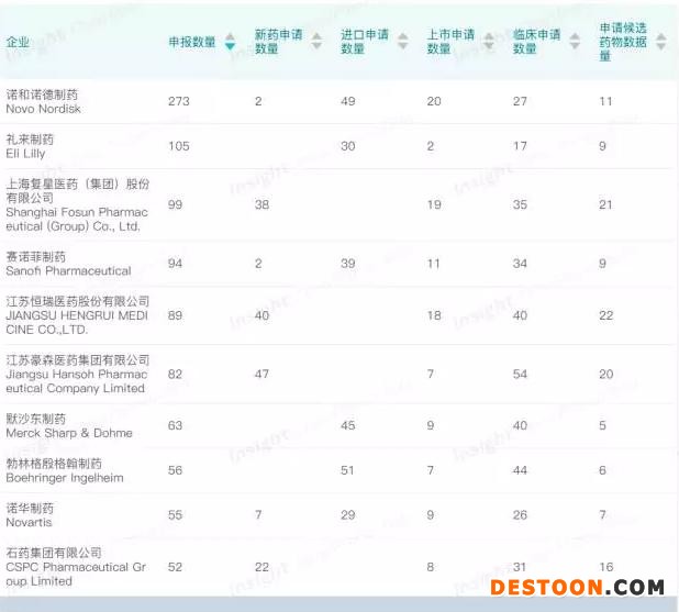 糖尿病領(lǐng)域藥企研發(fā)申報(bào)數(shù)量 TOP10