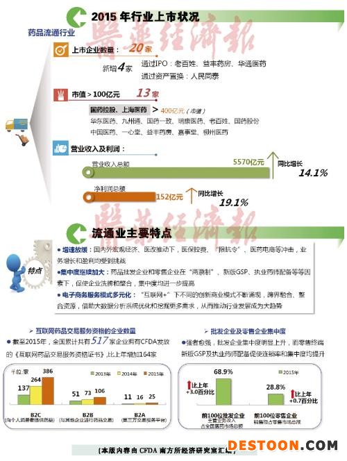 近期,商務部發(fā)布了2015年的藥品流通行業(yè)運行統(tǒng)計分析報告,從報告可見,2015年藥品流通在國內(nèi)外經(jīng)濟大環(huán)境下,在醫(yī)藥改革不斷縱深推進中,”互聯(lián)網(wǎng)+”催生業(yè)態(tài)多元化、新模式、新技術的挑戰(zhàn),行業(yè)整體發(fā)展雖然進入增速趨緩階段?;ヂ?lián)網(wǎng)下的跨界融合,也給醫(yī)藥流通行業(yè)向綜合服務提供商轉型升級帶來契機。