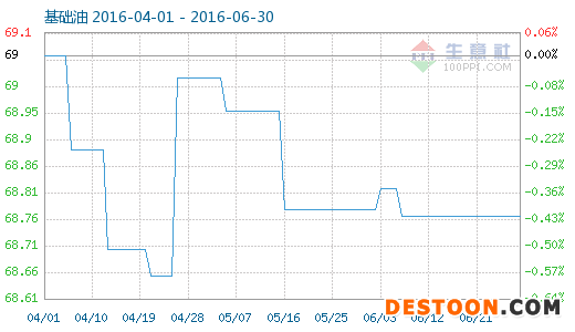 6月29日基礎(chǔ)油商品指數(shù)為68.77,與昨日持平,較周期內(nèi)最高點(diǎn)104.60點(diǎn)(2014-04-16)下降了34.25%,較2016年04月25日最低點(diǎn)68.66點(diǎn)上漲了0.16%。(注:周期指2013-12-01至今)