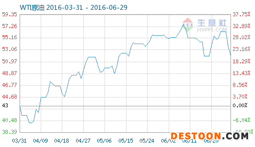 6月29日WTI原油商品指數(shù)為53.81,較昨日上升了1.71點(diǎn),較周期內(nèi)最高點(diǎn)124.29點(diǎn)(2013-09-08)下降了56.71%,較2016年02月11日最低點(diǎn)29.47點(diǎn)上漲了82.59%。(注:周期指2011-09-01至今)
