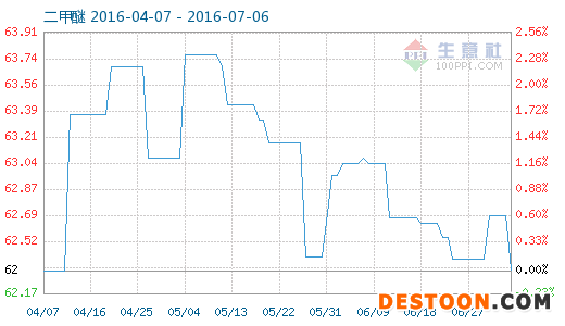 7月5日二甲醚商品指數(shù)為62.33,較昨日下降了0.36點(diǎn),較周期內(nèi)最高點(diǎn)115.59點(diǎn)(2013-12-15)下降了46.08%,較2016年02月26日最低點(diǎn)60.78點(diǎn)上漲了2.55%。(注:周期指2011-09-01至今)