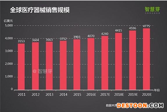 與此同時,全球醫(yī)療器械市場的研發(fā)投入也保持著穩(wěn)定增長態(tài)勢,2015年達到248億美元。