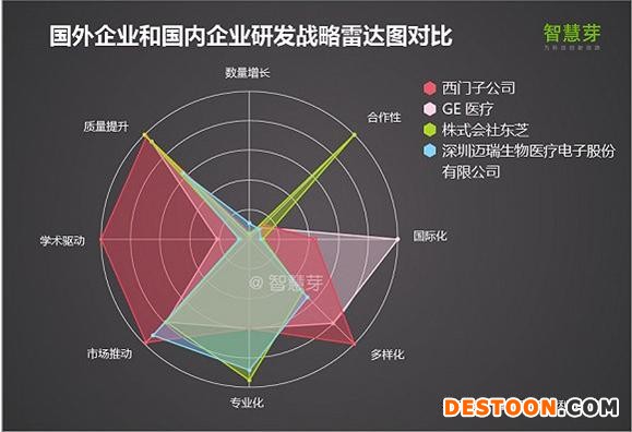 本次分析中我們以深圳邁瑞公司為例,對比國內(nèi)企業(yè)與國外“三巨頭”德國西門子,美國通用和日本東芝公司在高端影像醫(yī)學(xué)設(shè)備領(lǐng)域的專利的多項指標(biāo)進行對比,從而挖掘出國內(nèi)企業(yè)和國外巨頭相比,在研發(fā)策略上的異同。