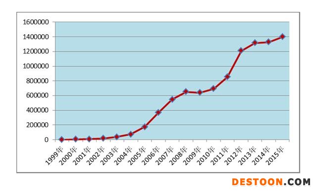 圖1 1999年-2015年全國藥品不良反應(yīng)/事件報告數(shù)量增長趨勢