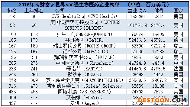 中國醫(yī)藥化工網(wǎng)訊 7月20日,美國《財富》雜志發(fā)布了世界500強榜單。