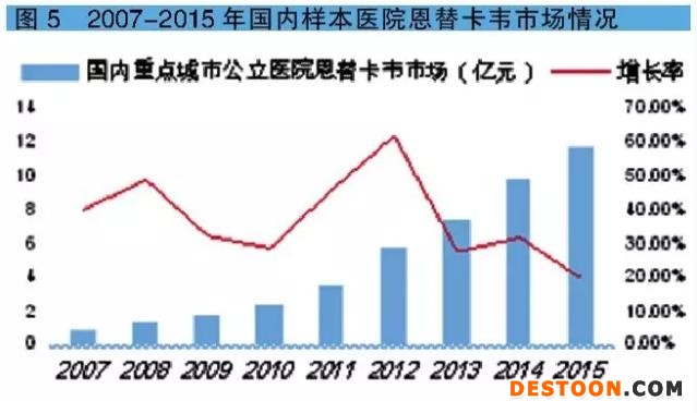 在第20屆亞太肝病學(xué)年會上,恩替卡韋被認為是對阿德福韋療效不佳的替代藥物,從而給慢性乙肝患者帶來了新的治療信心,客觀上推動了恩替卡韋市場的攀升。盡管恩替卡韋原研專利到期,2015年全球Baraclude市場仍達到13.12億美元。