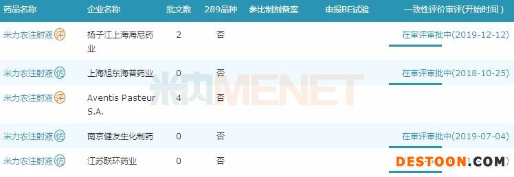 目前國內(nèi)市場(chǎng)有11家國內(nèi)藥企及1家跨國藥企擁有米力農(nóng)注射液生產(chǎn)批文,揚(yáng)子江上海海尼藥業(yè)已經(jīng)提交一致性評(píng)價(jià)補(bǔ)充申請(qǐng),目前處于“在審評(píng)審批中(在藥審中心)”狀態(tài);此外,上海旭東海普藥業(yè)、江蘇聯(lián)環(huán)藥業(yè)、南京健友生化制藥先后以仿制4類提交該產(chǎn)品上市申請(qǐng),均還在審評(píng)審批中。