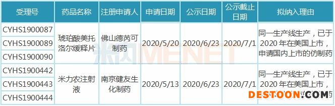 中國醫(yī)藥化工網(wǎng)6月30日訊 日前,CDE更新一批擬優(yōu)先審評(píng)目錄品種,南京健友生化制藥的米力農(nóng)注射液、佛山德芮可制藥的琥珀酸美托洛爾緩釋片在列,兩個(gè)產(chǎn)品以仿制4類報(bào)產(chǎn),擬納入理由均為“同一生產(chǎn)線生產(chǎn),已于2020年在美國上市,申請(qǐng)國內(nèi)上市的仿制藥”。米內(nèi)網(wǎng)數(shù)據(jù)顯示,2019年中國公立醫(yī)療機(jī)構(gòu)終端米力農(nóng)注射液、琥珀酸美托洛爾緩釋片銷售額分別為10.5億元、23.37億元,前者暫未有企業(yè)過評(píng),后者未有首仿獲批。