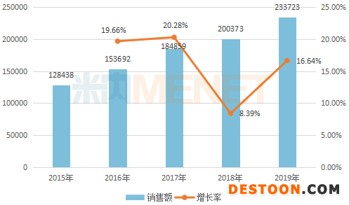 圖:2015-2019年中國公立醫(yī)療機(jī)構(gòu)終端鹽酸溴己新銷售情況(單位:萬元)