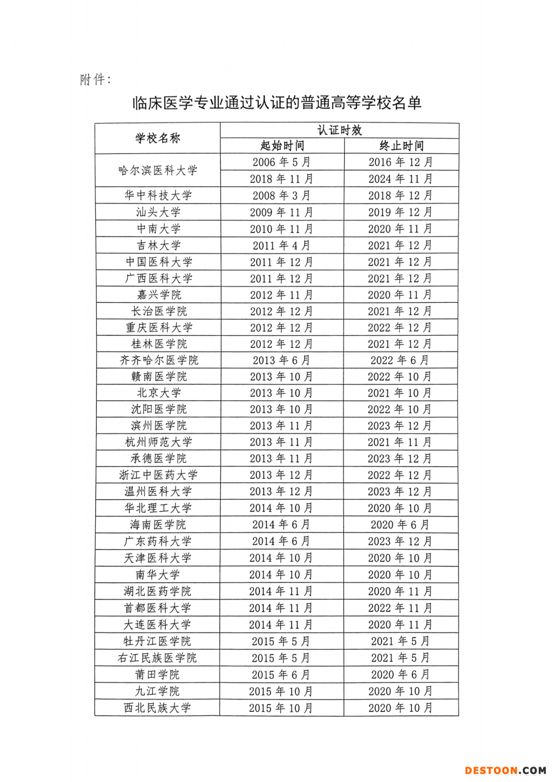 近日,教育部臨床醫(yī)學(xué)專(zhuān)業(yè)認(rèn)證工作委員會(huì)公布了截至2019年底臨床醫(yī)學(xué)專(zhuān)業(yè)通過(guò)認(rèn)證的普通高等學(xué)校名單。