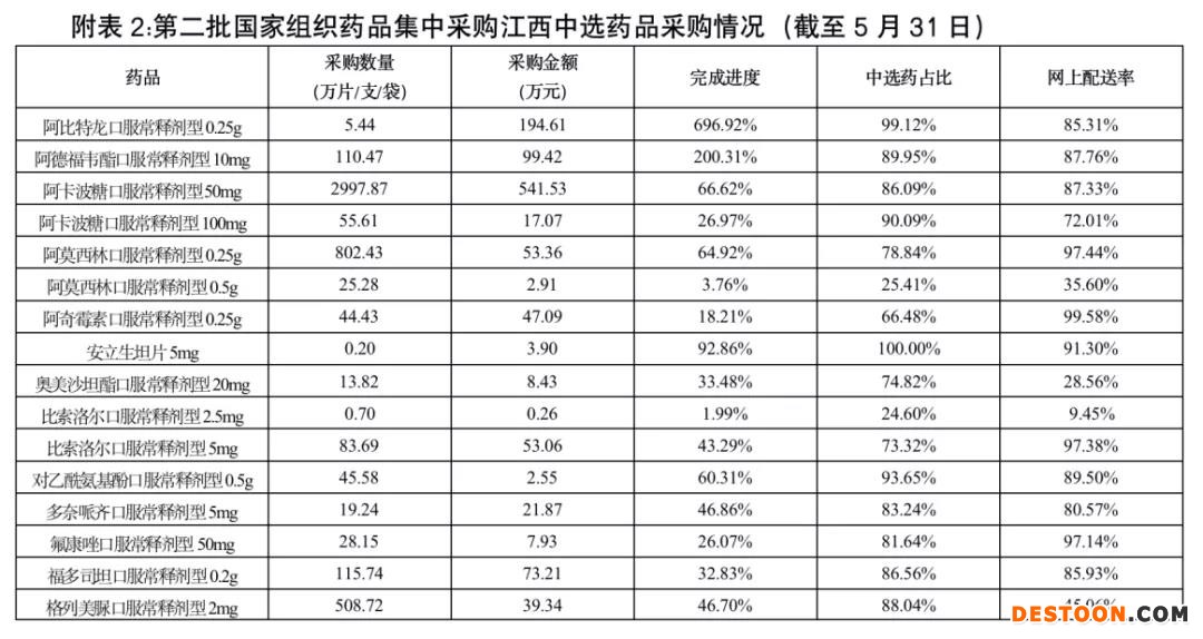值得注意的是,江西省公布的第二批國采數(shù)據中,32個藥品自2020年4月11日起在全省執(zhí)行?,F(xiàn)將截至2020年5月31日采購進度及有關情況通報如下。