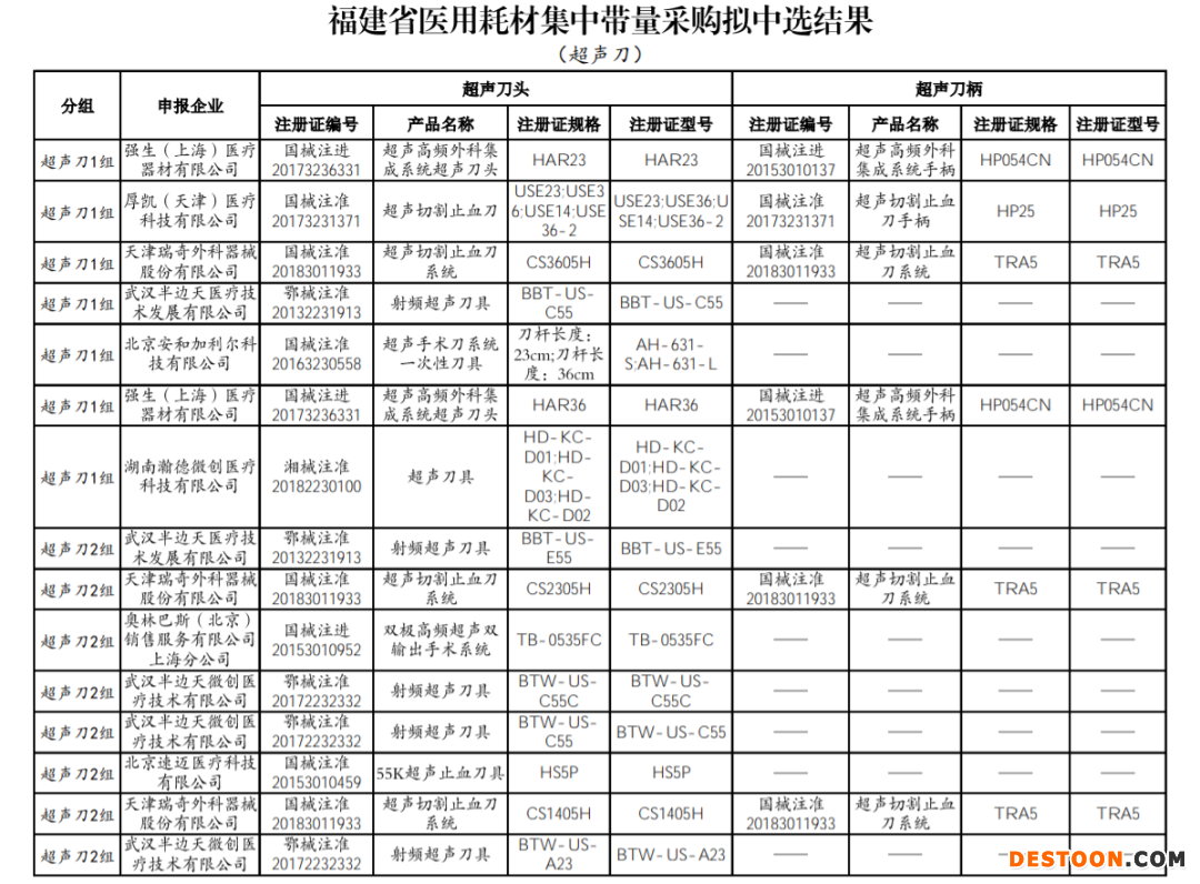 據(jù)賽柏藍(lán)器械統(tǒng)計(jì),超聲刀類耗材擬中選企業(yè)包括強(qiáng)生、奧林巴斯、天津瑞奇、北京速邁以及武漢半邊天等械企;