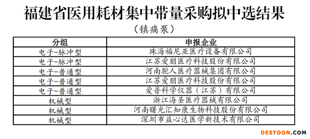 鎮(zhèn)痛泵擬中選企業(yè)包括、江蘇愛朋、河南駝人、珠海福尼亞等械企。