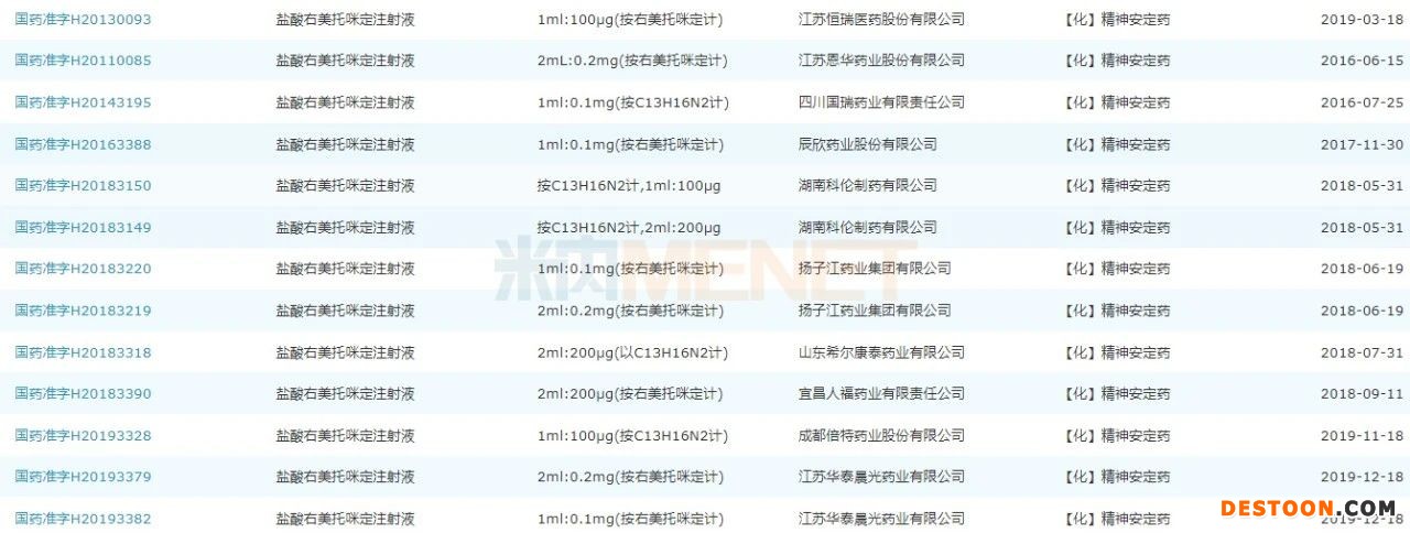 米內(nèi)網(wǎng)數(shù)據(jù)顯示,2019年中國城市公立醫(yī)院、縣級公立醫(yī)院、城市社區(qū)中心及鄉(xiāng)鎮(zhèn)衛(wèi)生院(簡稱中國公立醫(yī)療機(jī)構(gòu))終端右美托咪定注射劑銷售額高達(dá)35.99億元。目前,國內(nèi)生產(chǎn)企業(yè)有恒瑞醫(yī)藥、揚(yáng)子江藥業(yè)、辰欣藥業(yè)、恩華藥業(yè)、湖南科倫制藥等10家。一致性評價方面,僅有揚(yáng)子江藥業(yè)一家過評。