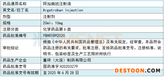 7月6日,富祥藥業(yè)(江西富祥藥業(yè)股份有限公司)發(fā)布公告稱,其控股子公司獲得國家藥監(jiān)局核準(zhǔn)簽發(fā)的阿加曲班注射液的《藥品注冊批件》。米內(nèi)網(wǎng)數(shù)據(jù)顯示,2019年中國公立醫(yī)療機(jī)構(gòu)終端阿加曲班注射液銷售額超過5億元。