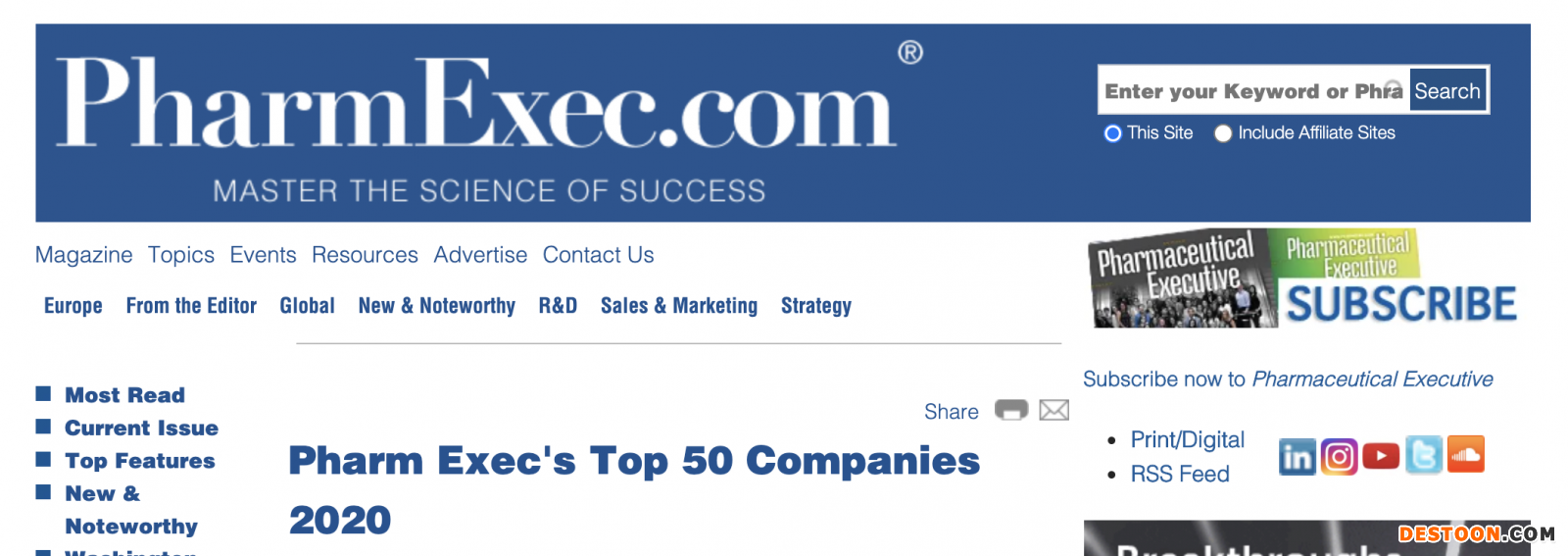 近日,美國《制藥經(jīng)理人》公布了2020年全球制藥公司50強(qiáng)名單,且在名單中附上各制藥企業(yè)的處方藥年度銷售排名。