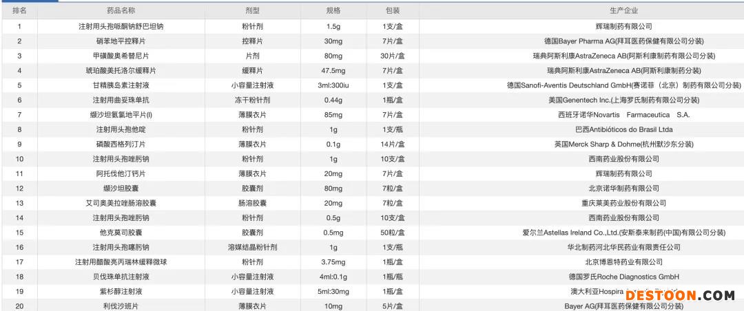 近日,福建省發(fā)布5月、4月藥品聯合限價陽光采購藥品銷售金額排名前20名單。