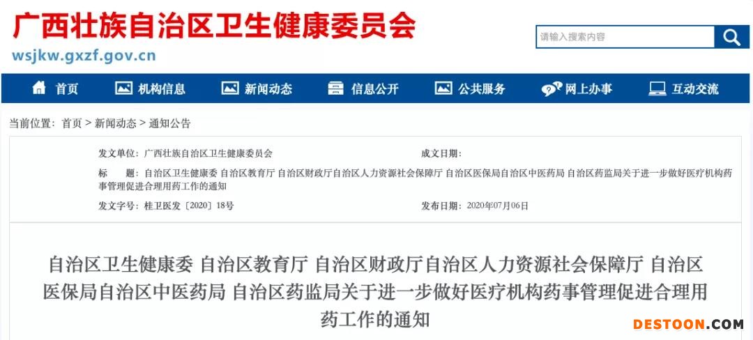 7月6日,廣西自治區(qū)衛(wèi)健委等七部門發(fā)布《關(guān)于進一步做好醫(yī)療機構(gòu)藥事管理促進合理用藥工作的通知》(以下簡稱《通知》)。
