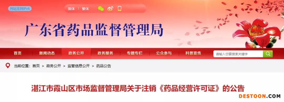 7月6日,廣東省藥監(jiān)局官網(wǎng)轉(zhuǎn)發(fā)了湛江市霞山區(qū)市場(chǎng)局關(guān)于注銷《藥品經(jīng)營(yíng)許可證》的公告。