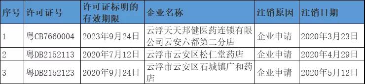 云浮市:3家藥店注銷