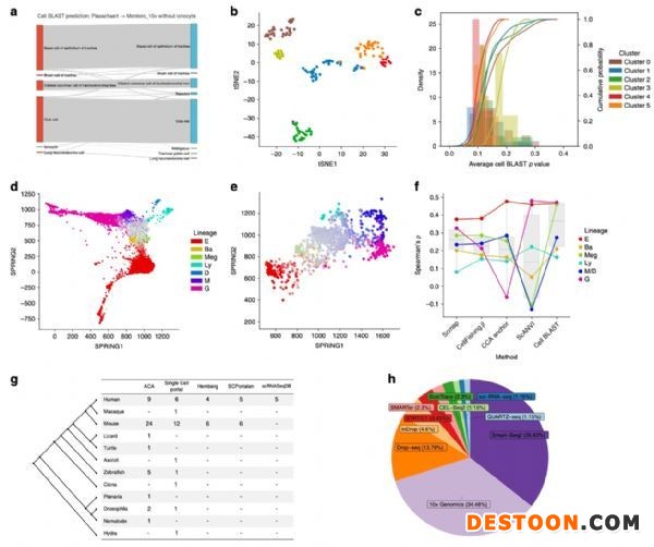 通過收集大量已發(fā)表的單細(xì)胞轉(zhuǎn)錄組數(shù)據(jù),作者建立了一個(gè)涵蓋2,989,582個(gè)單細(xì)胞、8個(gè)物種、27個(gè)不同的組織器官的數(shù)據(jù)庫(kù),稱為Animal Cell Atlas (ACA)(圖 g-h)。作者對(duì)ACA中的細(xì)胞注釋進(jìn)行了詳細(xì)的整理,并使用Cell Ontology構(gòu)建了一套結(jié)構(gòu)化的細(xì)胞類型標(biāo)注,用于統(tǒng)一不同數(shù)據(jù)集中的標(biāo)注以及支持細(xì)胞類型的推斷。