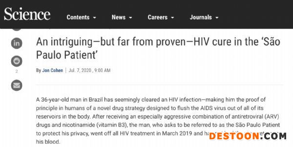 當(dāng)?shù)貢r(shí)間7月7日,《Science》官網(wǎng)發(fā)文報(bào)道,一位被稱為“圣保羅病人”的HIV感染者似乎通過藥物治療的手段清除了體內(nèi)所有的艾滋病毒。