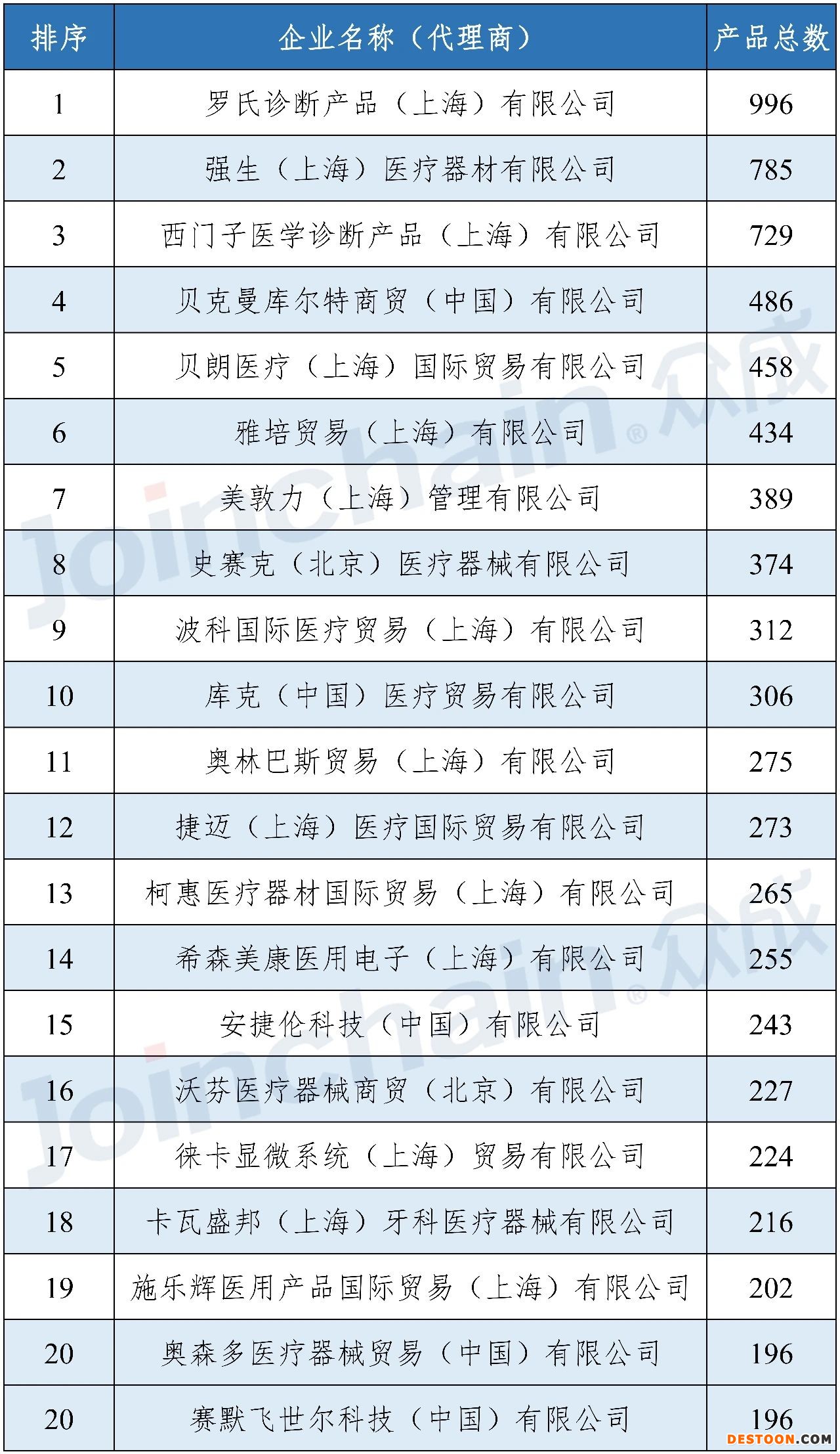 圖表2 全國進(jìn)口醫(yī)療器械產(chǎn)品注冊(cè)數(shù)量企業(yè)排行(Top20)