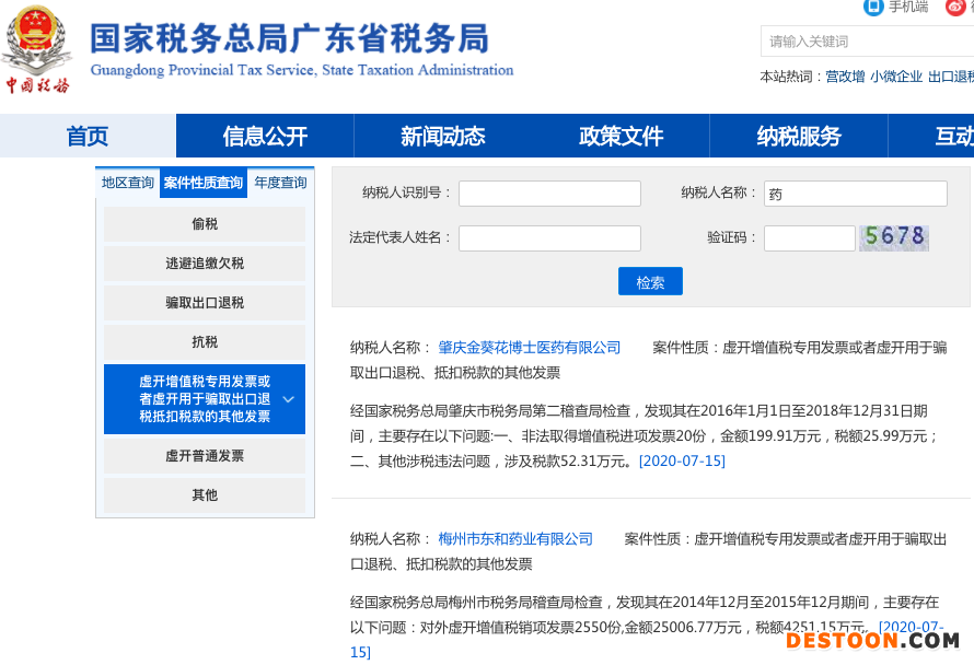 以廣東省為例,僅7月15日公布的有關醫(yī)藥企業(yè)涉嫌虛開增值稅專用發(fā)票的案件,就多達7例。
