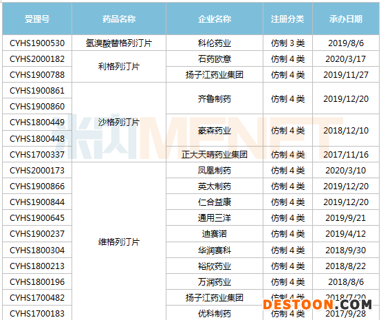 在審評(píng)中的DPP-4抑制劑仿制藥上市申請(qǐng)