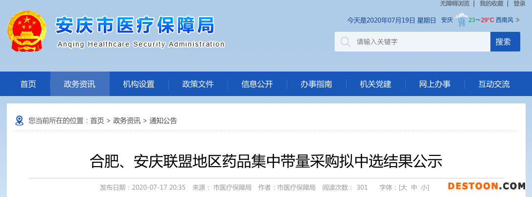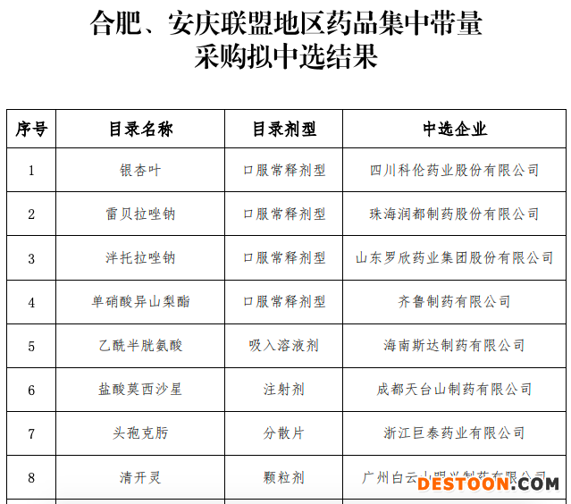 7月17日,安慶市醫(yī)保局正式公示《合肥、安慶聯(lián)盟地區(qū)藥品集中帶量采購擬中選結(jié)果》,齊魯、科倫、潤都等多家藥企入圍。