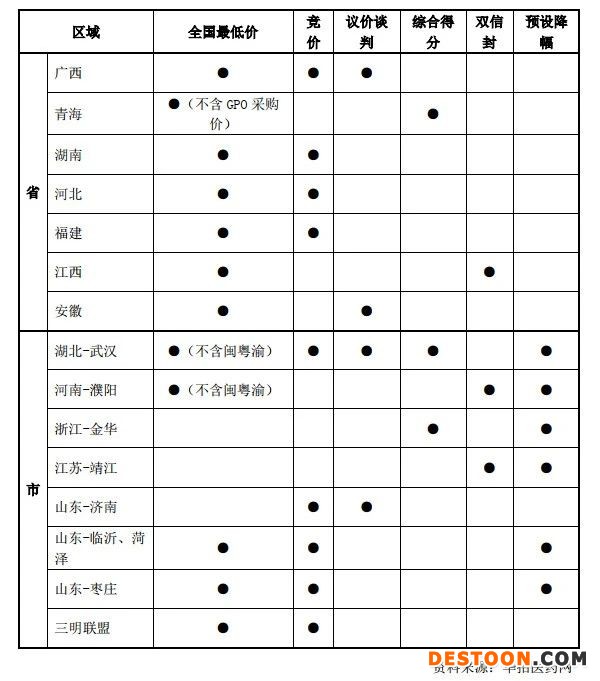 目前,地方帶量采購在全國遍地開花,但各地的招標(biāo)規(guī)則卻各部相同。很多地區(qū)除了要求全國最低價(jià),還出現(xiàn)了競(jìng)價(jià)、議價(jià)談判、綜合打分和預(yù)設(shè)降幅等多種方式,并再現(xiàn)雙信封,甚至有的區(qū)域?yàn)榱斯膭?lì)企業(yè)報(bào)低價(jià),還可為中標(biāo)價(jià)保密等。