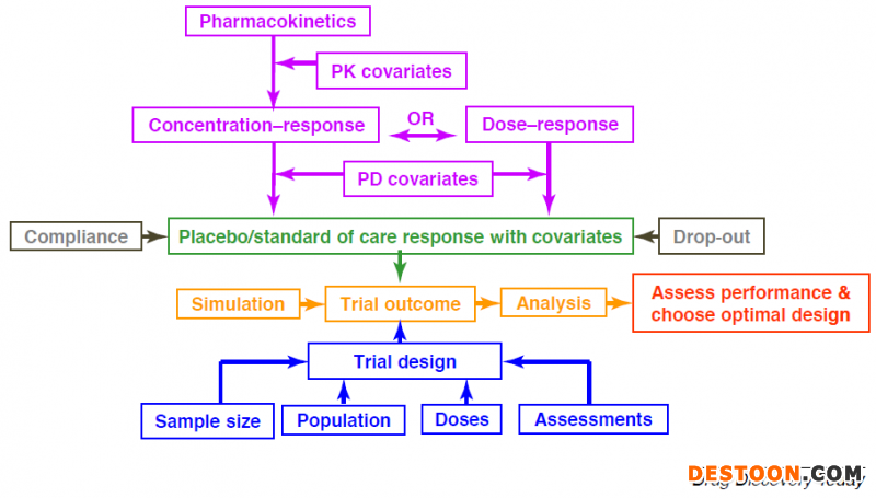 對于POM,POC研究來說,他們有點(diǎn)類似于臨床早期階段的PK/PD研究,或者你將其理解為PK/PD研究的一部分也不錯。當(dāng)然,子集和母集也是有區(qū)別的。POM選擇的生物標(biāo)記物主要和候選分子的作用機(jī)制相關(guān);POC研究選擇與臨床療效有關(guān)的下游生物標(biāo)志物作為指標(biāo)。另外,PK/PD研究可以進(jìn)行建模和模擬的方法進(jìn)行,而POM,POC通常都是實(shí)打?qū)嵉难芯?,不做建模和模擬。凡事有例外,我們在下面就會看到反例。