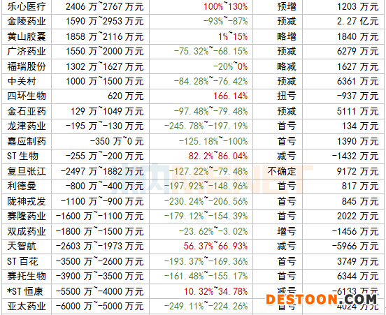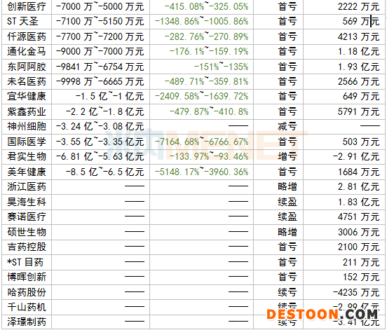 在已披露業(yè)績(jī)情況的醫(yī)藥企業(yè)中,31家預(yù)計(jì)虧損,包括21家首虧。其中,美年健康、君實(shí)生物凈利潤(rùn)虧損超5億元;ST天圣、國(guó)際醫(yī)學(xué)、宜華健康等4家下滑超10倍。此外,千山藥機(jī)收到深交所關(guān)于公司股票終止上市決定。