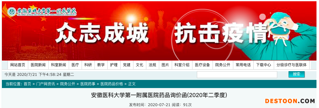 醫(yī)藥網(wǎng)7月23日訊 7月21日,安徽醫(yī)科大學(xué)第一附屬醫(yī)院發(fā)布《藥品詢價(jià)函(2020年二季度)》,有19個(gè)品種醫(yī)院點(diǎn)名要采購(gòu)。