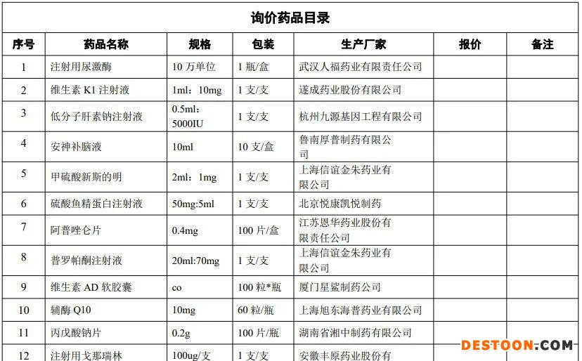 詢價(jià)函顯示,根據(jù)藥品配送企業(yè)及生產(chǎn)企業(yè)提出藥品調(diào)價(jià)申請(qǐng),上述醫(yī)院擬近期對(duì)因價(jià)格原因造成臨床短缺的19個(gè)常用藥品進(jìn)行公開(kāi)詢價(jià),誠(chéng)邀與該院有業(yè)務(wù)關(guān)系的各家藥品經(jīng)營(yíng)公司參與報(bào)價(jià)。