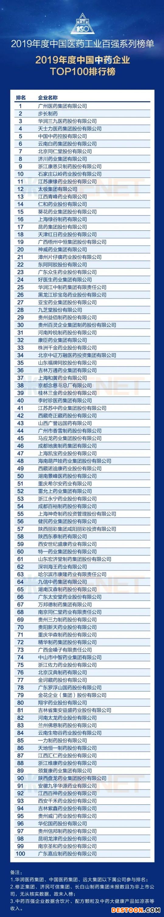 在2019年度中國中藥企業(yè)TOP100排行榜中,廣藥集團(tuán)、步長制藥、華潤三九位列前三甲;