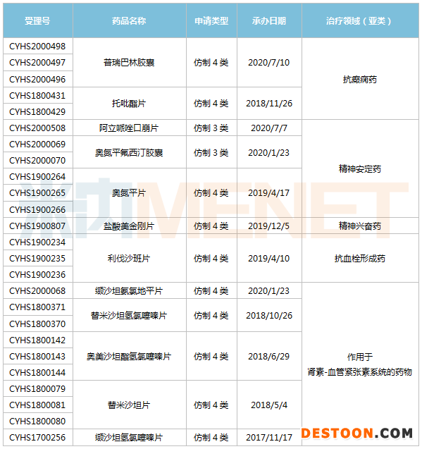 從治療類別看,華海藥業(yè)在審仿制藥主要布局心腦血管用藥、神經系統(tǒng)藥物等領域。其中,作用于腎素-血管緊張素系統(tǒng)的藥物有6個品種,精神安定藥有3個品種,抗癲癇藥有2個品種。