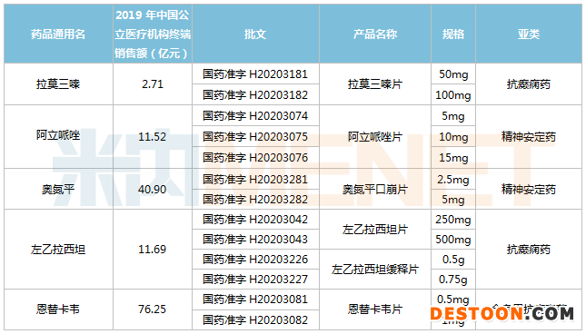 米內網數據顯示,奧氮平、左乙拉西坦、恩替卡韋、阿立哌唑等4個通用名藥品2019年在中國公立醫(yī)療機構終端銷售額均超過10億元。除恩替卡韋片外,華海藥業(yè)獲批的品種有5個為神經系統(tǒng)藥物。近年來,國內神經系統(tǒng)藥物市場規(guī)模逐年上漲。米內網數據顯示,2019年中國公立醫(yī)療機構終端神經系統(tǒng)藥物銷售額超過1083億元。