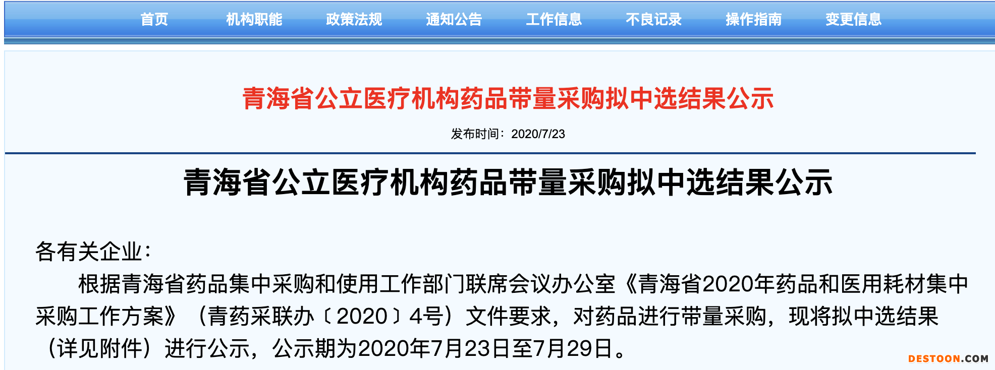 7月23日,青海省公立醫(yī)療機構(gòu)藥品帶量采購擬中選結(jié)果公示。