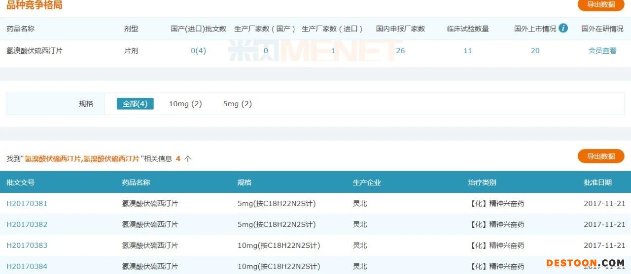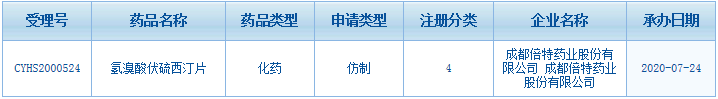 7月24日,CDE官網(wǎng)顯示,成都倍特藥業(yè)的氫溴酸伏硫西汀片4類仿制上市申請(qǐng)獲得受理。米內(nèi)網(wǎng)數(shù)據(jù)顯示,2019年中國(guó)公立醫(yī)療機(jī)構(gòu)終端伏硫西汀片劑銷售額3086萬元,生產(chǎn)企業(yè)僅有靈北一家。在此之前,揚(yáng)子江和正大天晴藥業(yè)集團(tuán)分別以仿制3類、4類提交上市申請(qǐng),在審評(píng)審批中(在藥審中心)。
