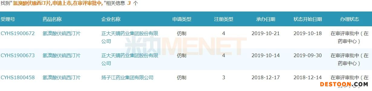 在此之前,揚(yáng)子江和正大天晴藥業(yè)集團(tuán)分別以仿制3類、4類提交上市申請(qǐng),在審評(píng)審批中(在藥審中心)。