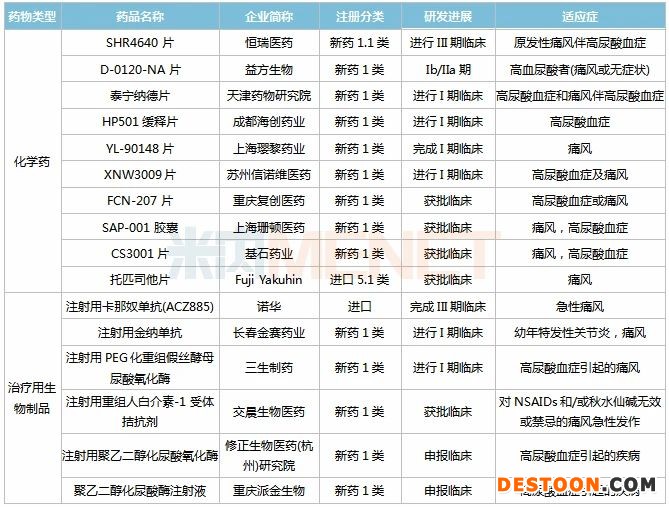 表1:痛風(fēng)新藥國(guó)內(nèi)在研情況